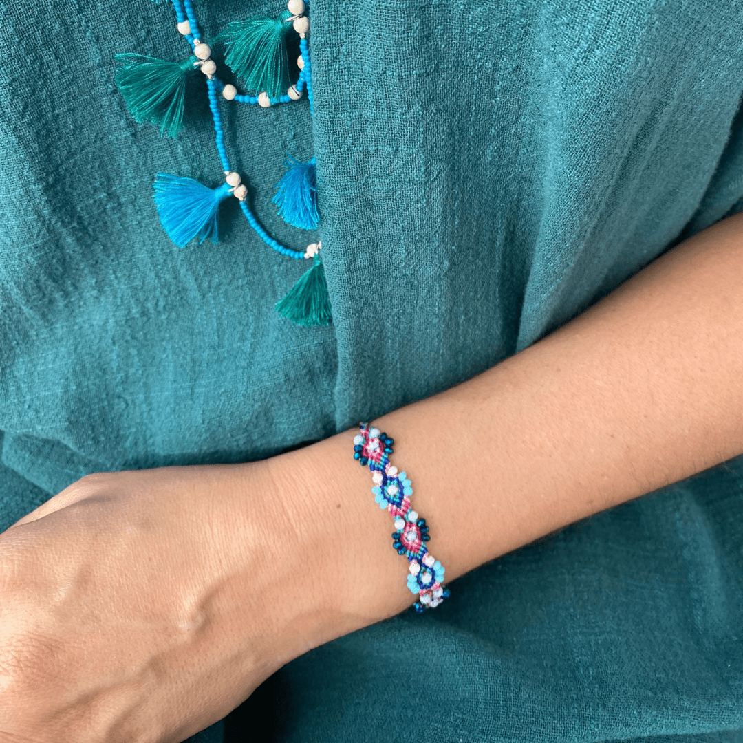Bali Friendship Lei Bracelet - Pink Sky Blue